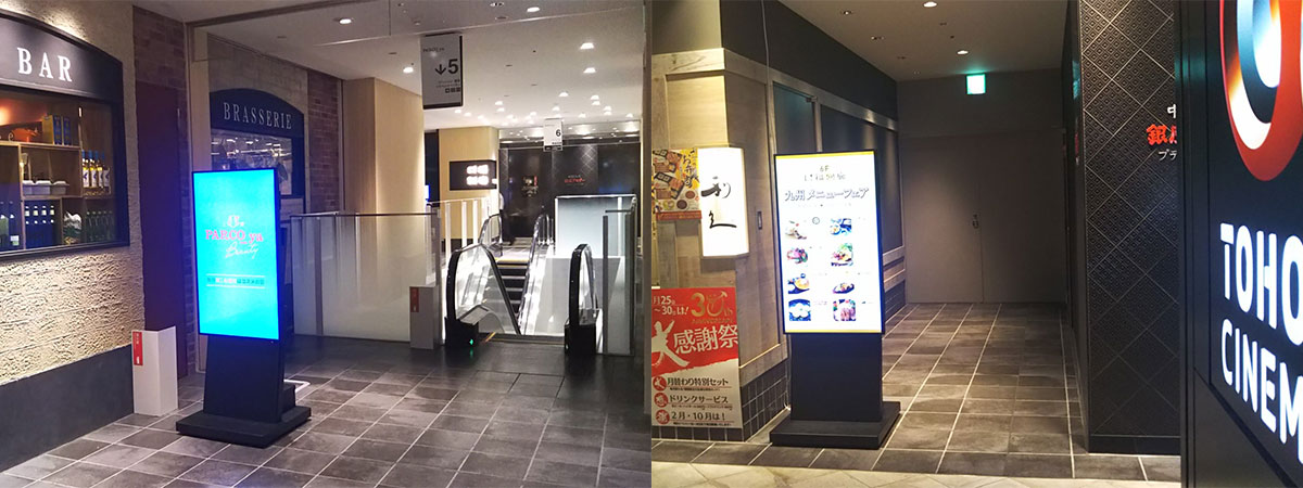 フロア案内サイン (50型ストレッチ ディスプレイ) エントランス 全館サイン+飲食テナント一覧サイン+販促